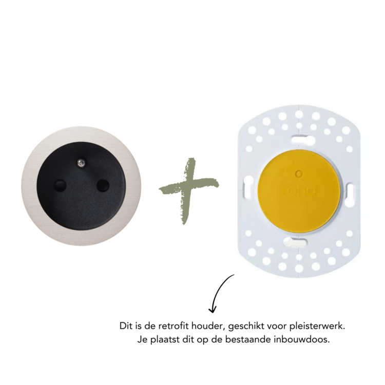 De juiste houder is onmisbaar. Om je ROND stopcontact of schakelaar goed in de ondergrond te plaatsen, zijn er verschillende houders; de retrofit houder en de multifit houder.